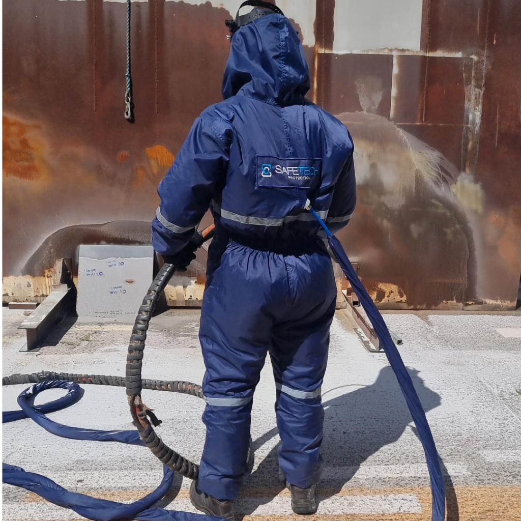 Confeccionado em tecido de alta resistência mecânica, abrasão e produtos químicos* com fechamento frontal de zíper e capuz, podendo ser utilizado em combinação com o sistema Air Comfort.